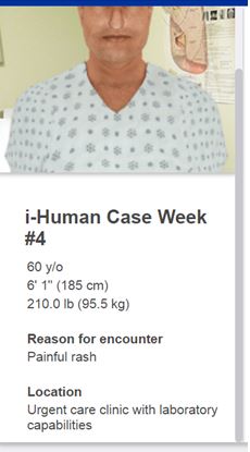 i-Human 60 y/o 6′ 1″ (185 cm) 210.0 lb (95.5 kg) Reason for encounter Painful rash